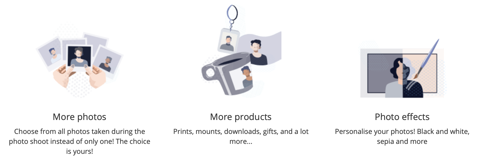 How does it work? Just enter your personal access code from your access card or your proof card. Then, search in the album for the photos that you like best and choose how you want to order them. Simple!